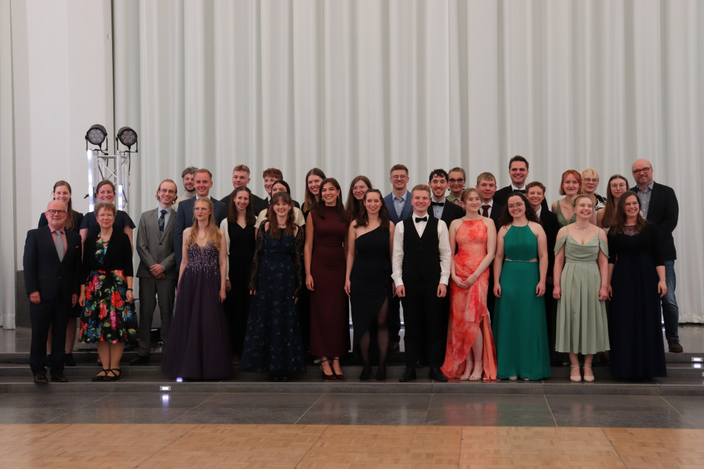 Nach einem gemeinsamen Erinnerungsfoto wurden anschließend das Buffet und später auch die Tanzfläche für alle Anwesenden eröffnet. Bis tief in die Nacht feierten die Absolventinnen und Absolventen mit ihren Familien, Freunden und Wegbegleitern diesen Meilenstein und ließen die gemeinsame Zeit an der Universität im festlichen Ambiente des Paulinums Revue passieren.